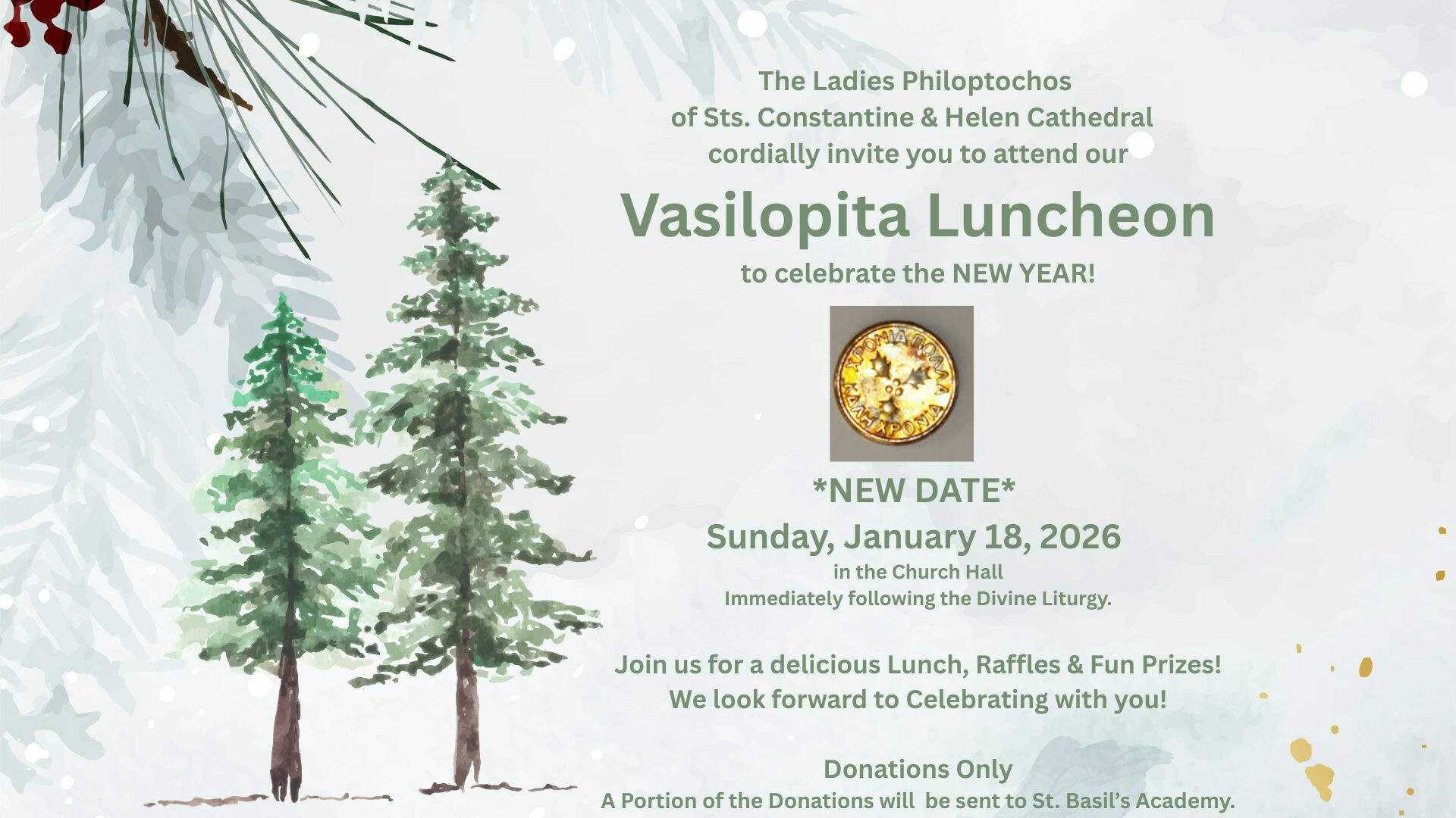 Ladies Philoptochos of Saints Constantine and Helen Cathedral cordially invite to attend our Vasilopita Luncheon!