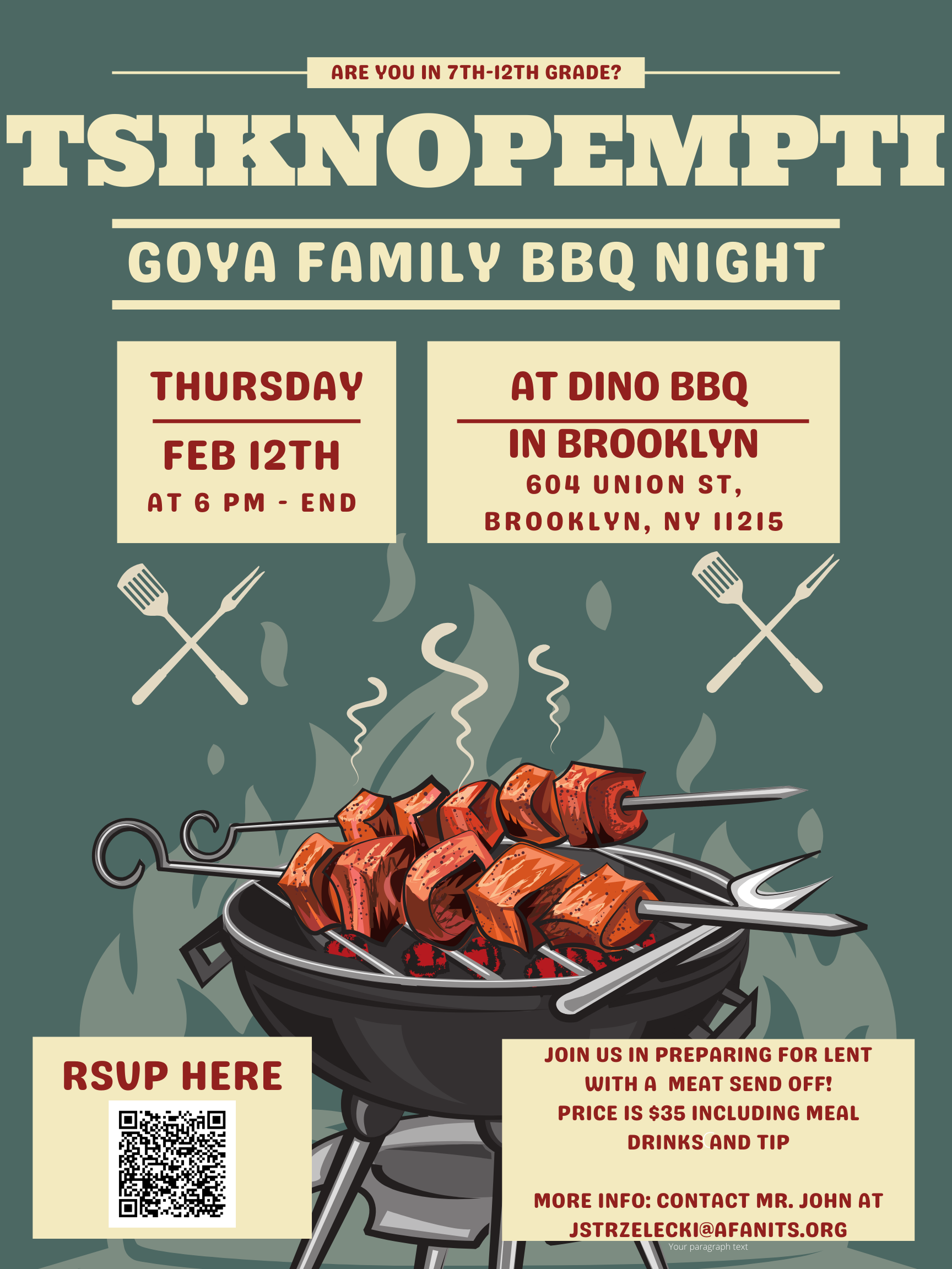 We welcome all of our 7th - 12th Grade students to join us for our GOYA Tsiknopempti Dinner,